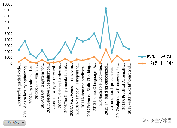 其中,15年最有影响力论文《Pin: building customized program analysis tools with dynamic instrumentation》引用次数和下载次数均居首位,17年最有影响力论文《Valgrind: a framework for heavyweight dynamic binary instrumentation》和13年最具影响力论文《The nesC language: A holistic approach to networked embedded systems》仅居其后。